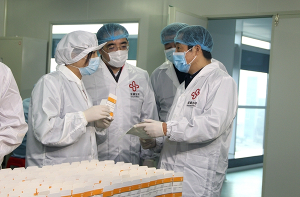 时任湖南省省长、现任湖南省委书记许达哲在抗疫早期调研美高梅mgm1888生物抗疫物资生产情况