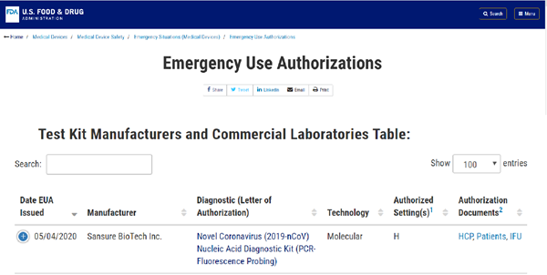 北京时间5月5日晚,美高梅mgm1888生物新型冠状病毒核酸检测试剂盒获美国食品药品监督管理局(FDA)紧急使用授权(EUA, Emergency Use Authorizations),这是该产品继1月28日获得中国国家药监局(NMPA)注册认证、3月3日获得欧盟CE认证后,美高梅mgm1888生物获得的又一重要认证,将进一步助力公司服务全球新冠肺炎疫情防控。